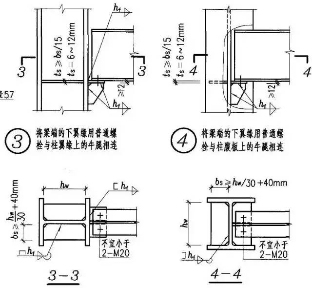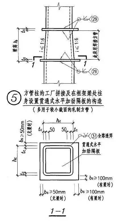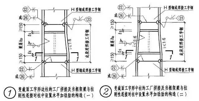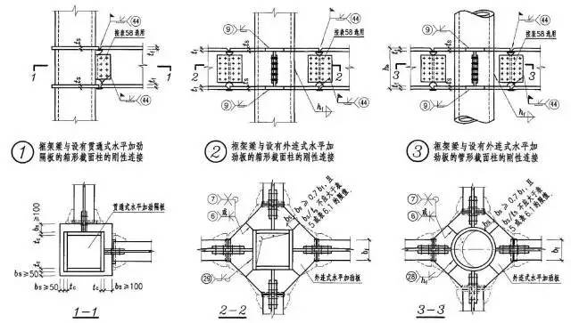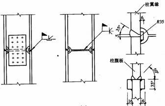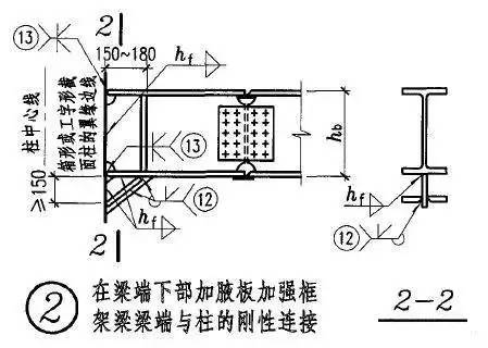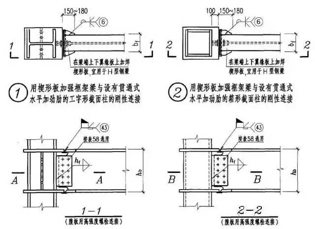 1)工字形梁與工字形柱或箱形柱剛性連接的細部構造;