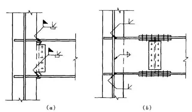 a、懸臂梁與梁栓焊混合節點;b、懸臂梁與梁全栓接節點。