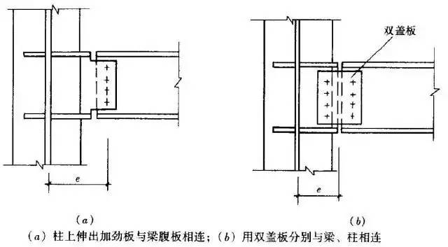2)工字形柱和箱形柱通過帶懸臂梁段與框架梁連接時,構造措施有兩種: