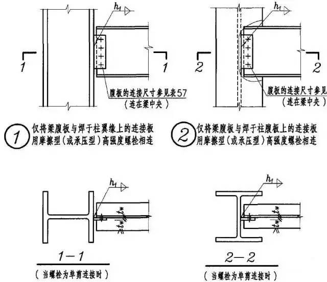 梁與柱的鉸接連接分為:僅梁腹板連接、僅梁翼緣連接。