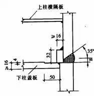 翼緣一般為全熔透坡口焊接,腹板可為高強度螺栓連接,當柱腹板采用焊接時,上柱腹板開K形坡口,要求焊透。箱形截面柱的拼接接頭應全部采用焊接,為便于全截面熔透。