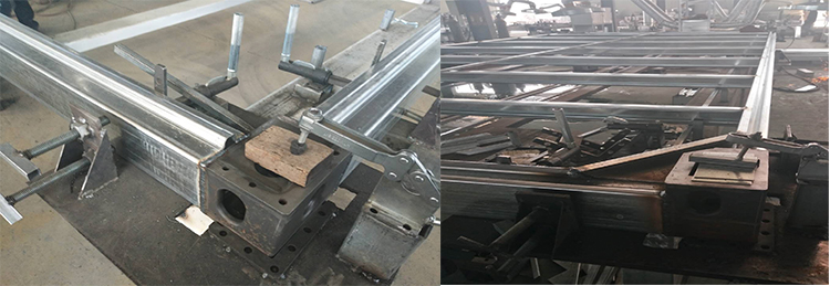 2、型材軋制成型后,經過校正拼裝,配合以連接吊裝角件,焊接成獨立的屋面或地面結構;
