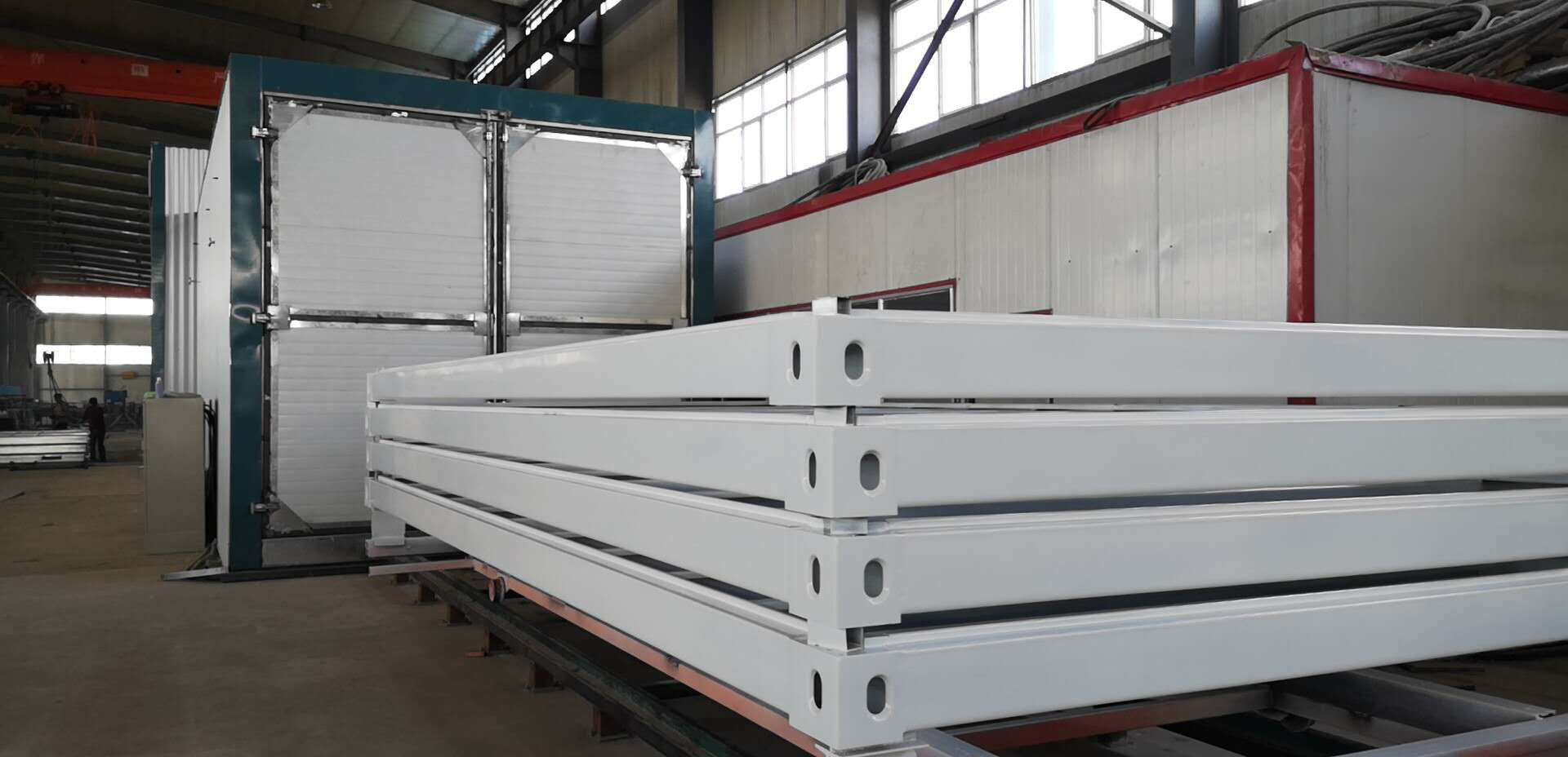 1、打包箱式房屋頂框梁、底框梁、鋼柱等鋼構件選用3.0mm厚G345強度熱鍍鋅帶鋼,經專用設備軋制成型;